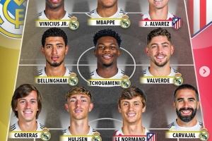 前锋:维尼修斯(皇马)、姆巴佩(皇马)、阿尔瓦雷斯(马竞)