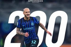 国米官推为其晒出纪念海报,并配文:“200场比赛,无限的激情!”